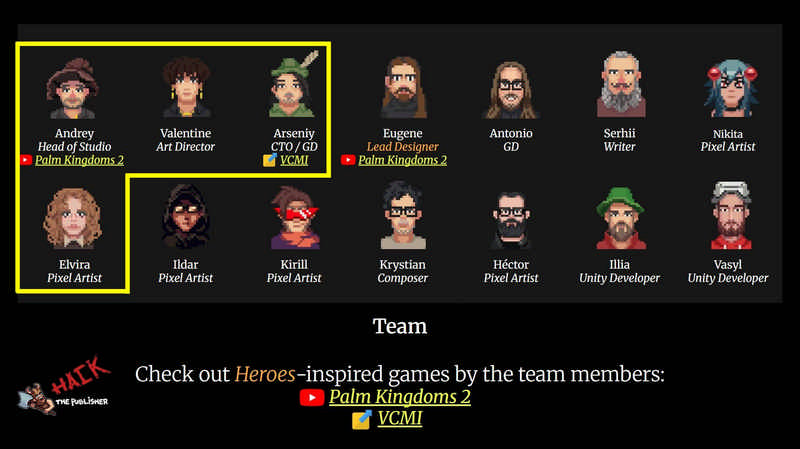 Back then, Andrey sported an impressive team of artists, a VCMI contributor as a cofounder (Arseniy Shestakov; VCMI is a famous Heroes III rewrite) and even the original game designer of Palm Kingdoms. The team full of stars.